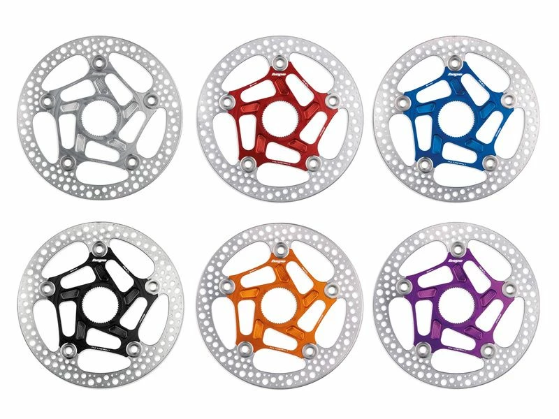 Le disque flottant Hope RX ici dans sa version Centerlock, est doté d’une conception flottante offrant une meilleure dissipation de chaleur. Sa surface de freinage en acier est traitée thermiquement et rivetée sur étoile aluminium et les flancs du disque sont usinés afin de limiter tout risque de coupure. Il est disponible en 6 couleurs (Noir, Rouge, Argent, Bleu, Orange et Violet) et uniquement en diamètre 160 mm.