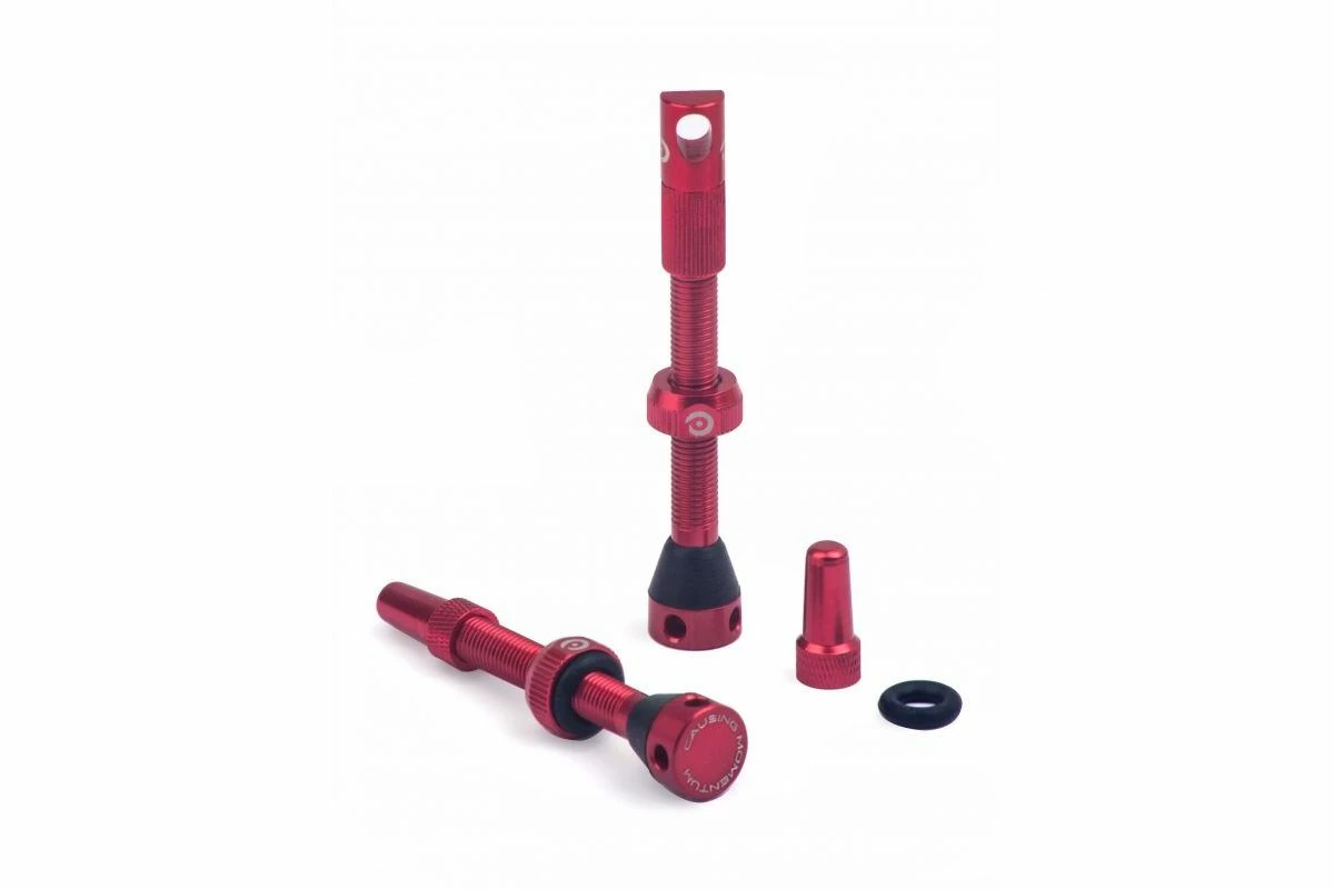 Cette paire de valves Momum est dotée de trous de diffusion d’air latéraux au niveau de l’embase permettant de gonfler vos pneus tubeless équipés de mousses anti pincement.