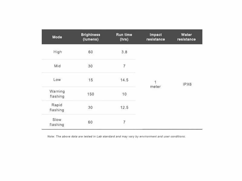 Avec une puissance maximale de 150 lumens et un rythme de clignotement unique, le mode d’avertissement est spécialement conçu pour rouler de jour et être visible de jusqu’à 650 mètres