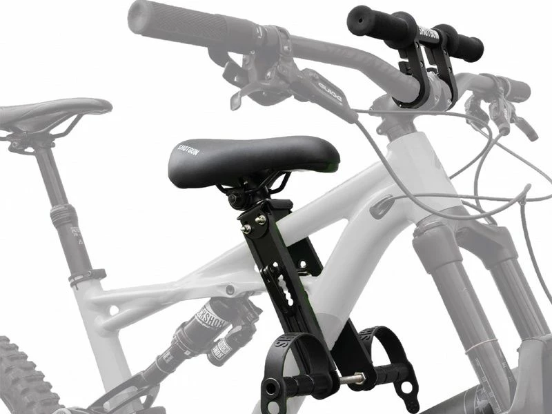 Faites découvrir les plaisirs du VTT et du plein air à votre enfant grâce au combo selle et guidon Shotgun. Grâce à ce dispositif compatible avec la majorités des VTT, votre enfants de 2 à 5 ans et jusqu’à 22 kg, profitera des sorties vélo avec vous , bien calé sur sa propre selle entre vous et votre poste de pilotage. Attention , ce système n’est pas compatible avec les vélos hybrides, les vélos de route et les gravels et les vélos électriques