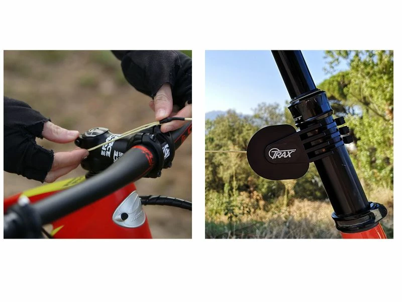 - TRAX peut être installé, en moins d’une minute, sur n’importe quel vélo sans utiliser aucun outil. Le dispositif est fixé à la tige de selle du vélo tracteur au moyen de 3 brides en nylon standard.