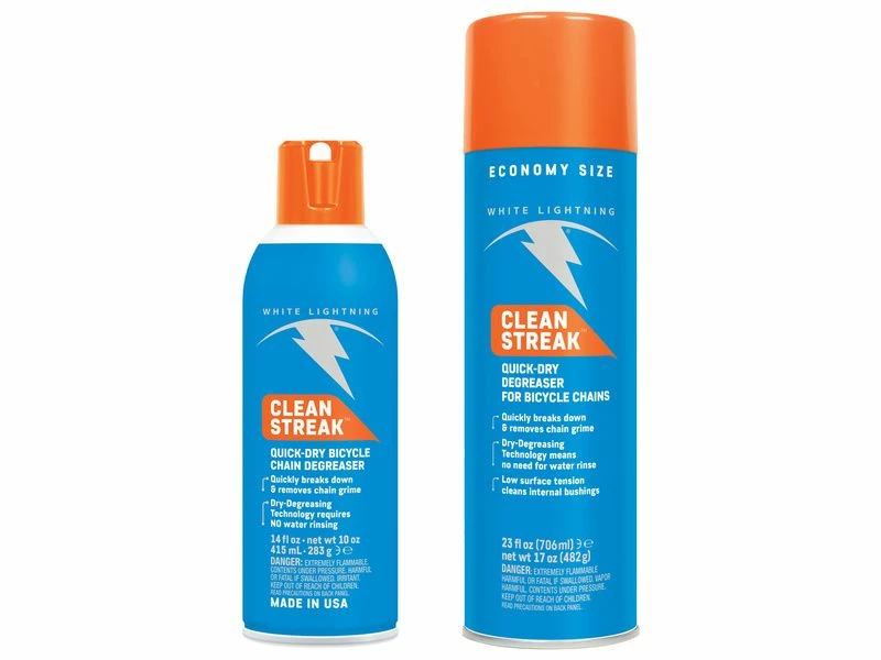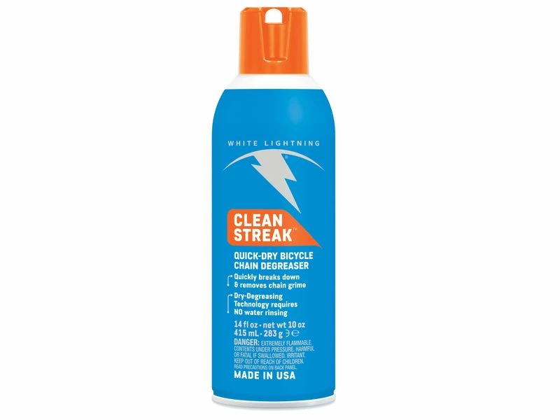 Le dégraissant à sec White Lightning Clean Streak est idéal pour néttoyer votre chaine de vélo. Il décompose et élimine rapidement et efficacement la saleté de la chaine sans avoir à la rincer. Ne surtout pas appliquer sur les plaquettes de freins.